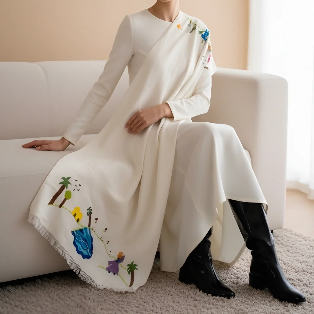 - Use: Can be worn as a stylish shawl or used as a decorative home throw